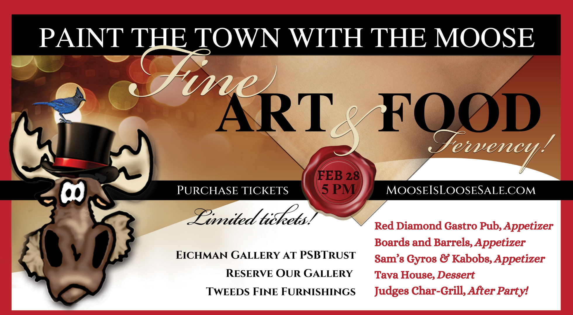 The Moose has prepared an exquisite evening of fine art and cultured cuisine that will nourish your spirit and tempt your palate!